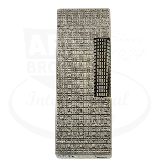 Preowned Dunhill Rollagas Silver Tartan Square Guilloche Table Lighter, Dunhill-31
