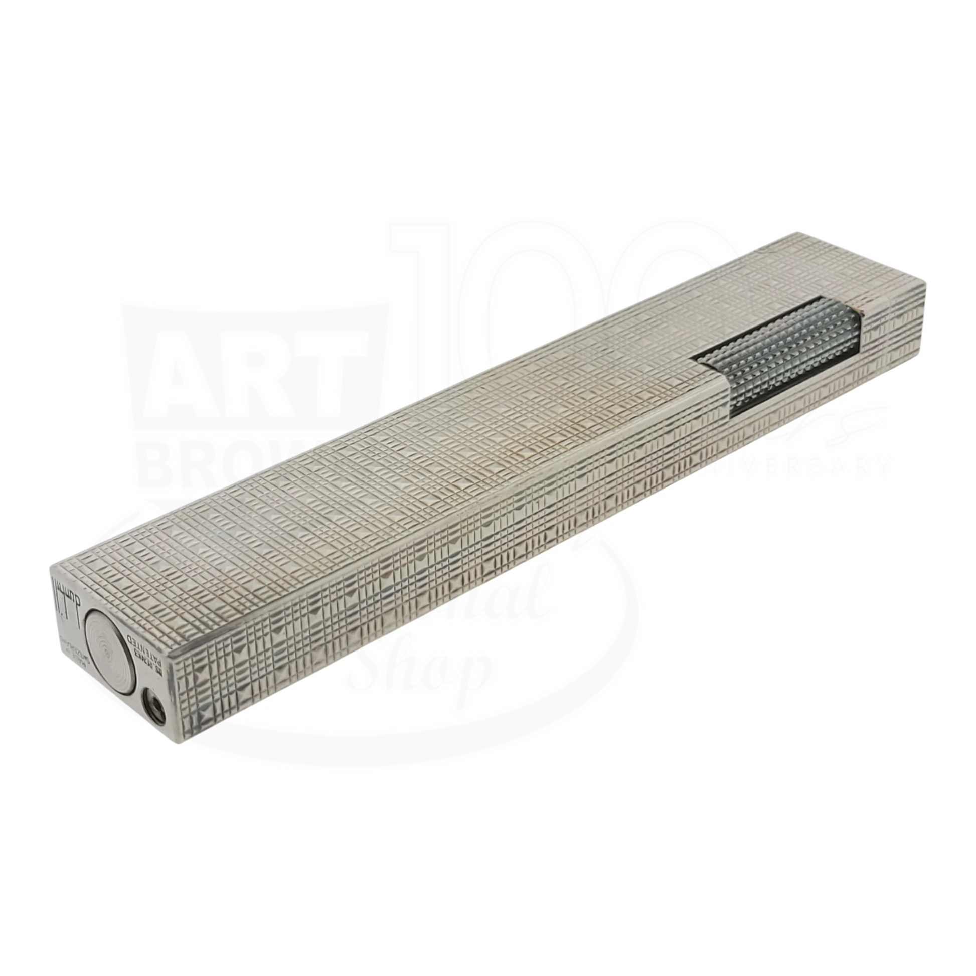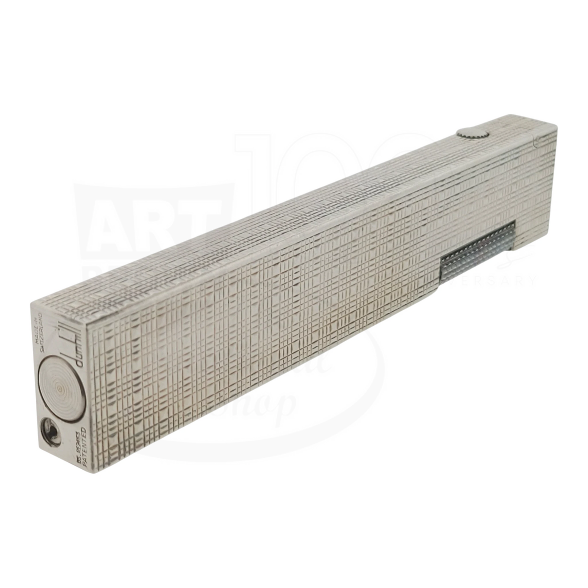 Preowned Dunhill Rollagas Silver Tartan Square Guilloche Table Lighter, Dunhill-31