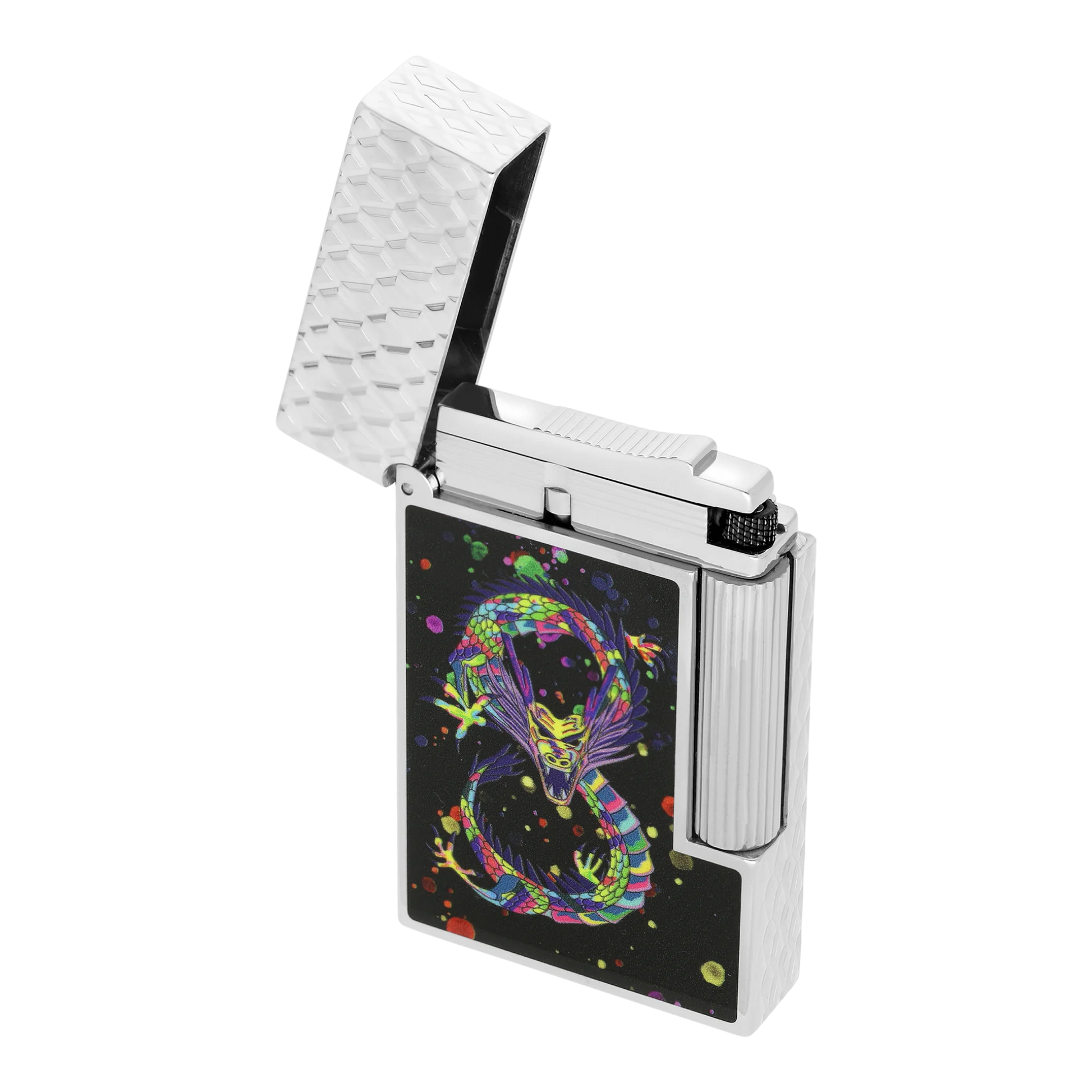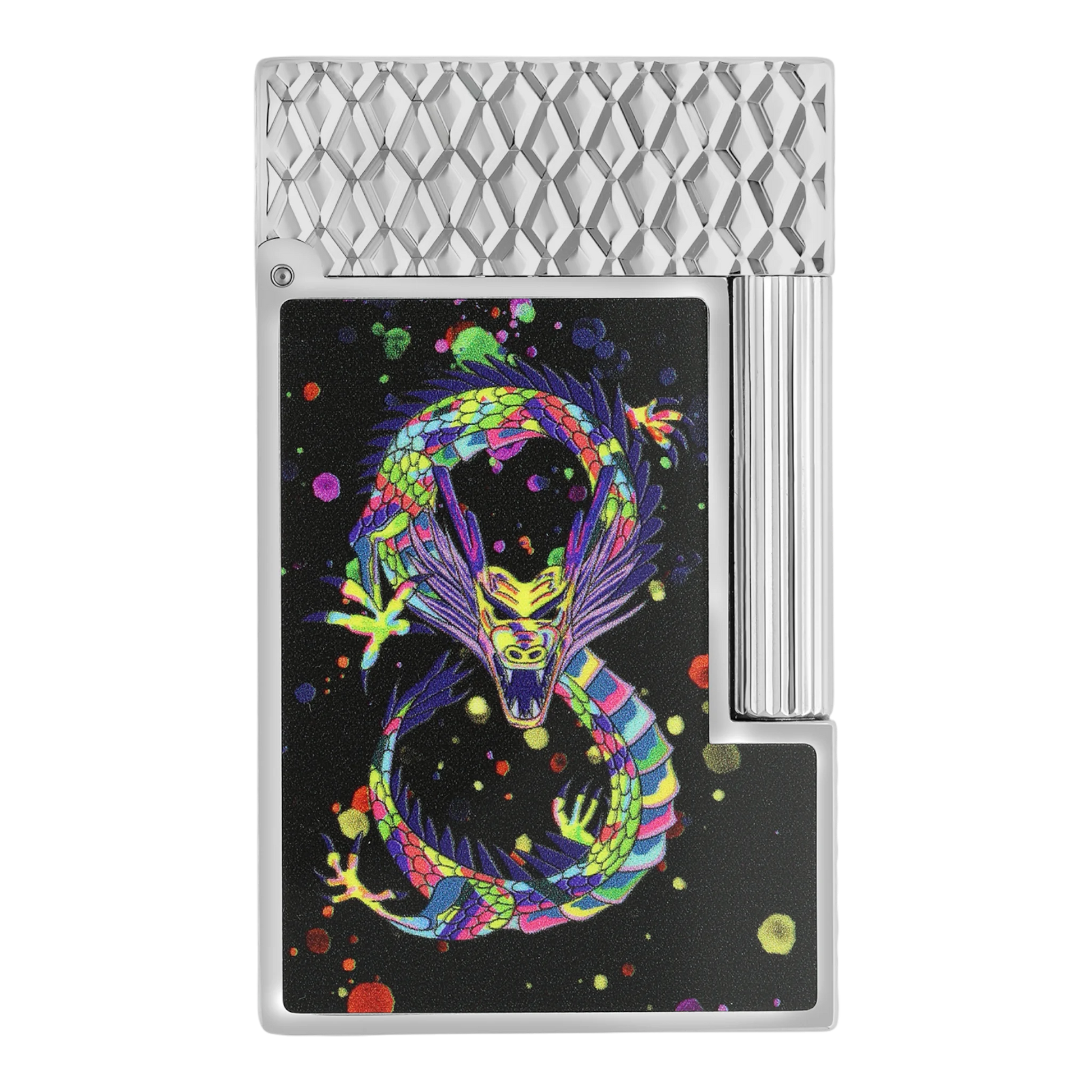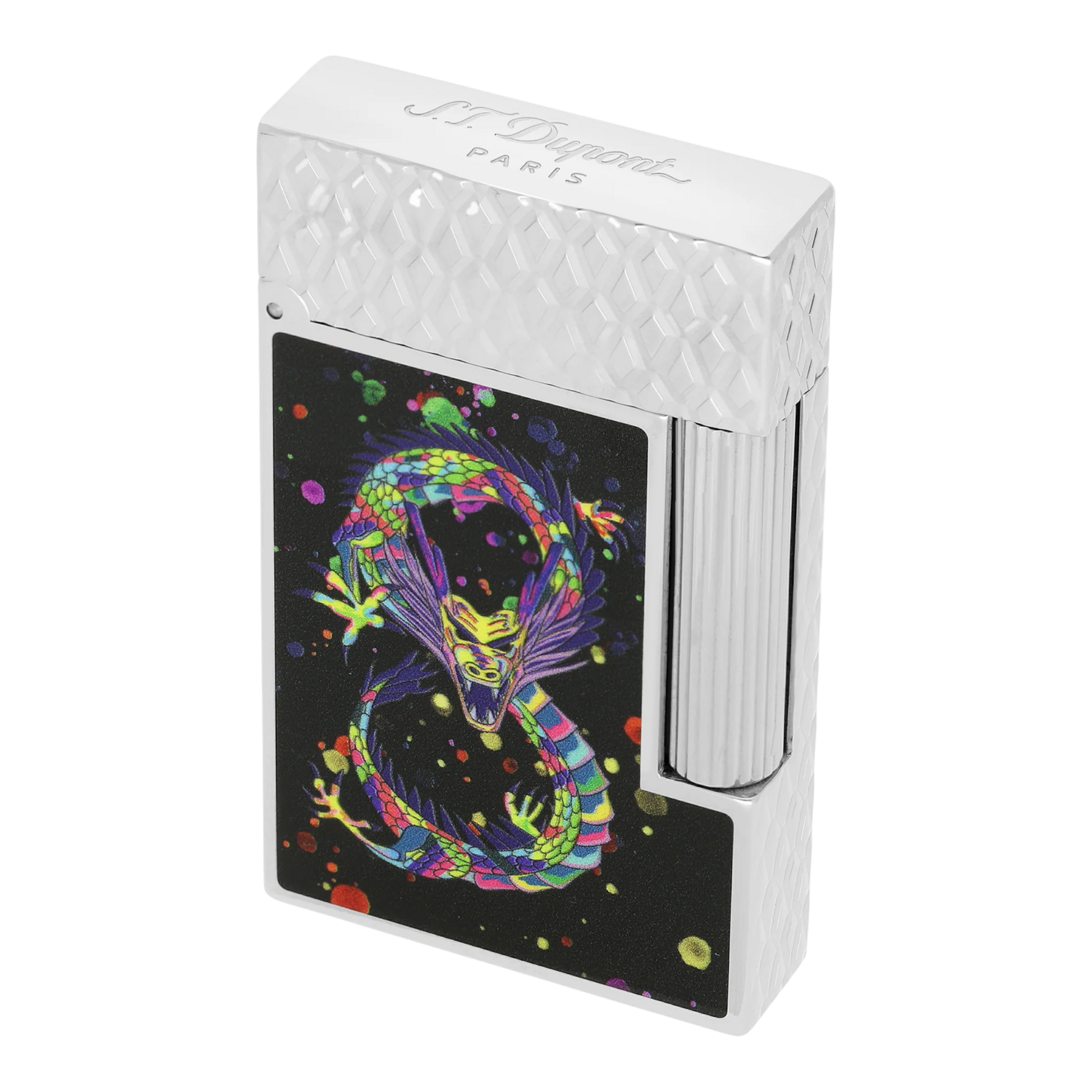The Dragon Red and Dragon Black lines see the iconic products of S.T. Dupont to adorn themselves with a dragon inspired by anime and street art. Gushing from a confetti cloud, it symbolizes the joy and the infinite possibilities offered by this new lunar year. Illustrated on the body of the emblematic maxijet, the Dragon S.T. Dupont undulates on this Bordeaux color lighter.