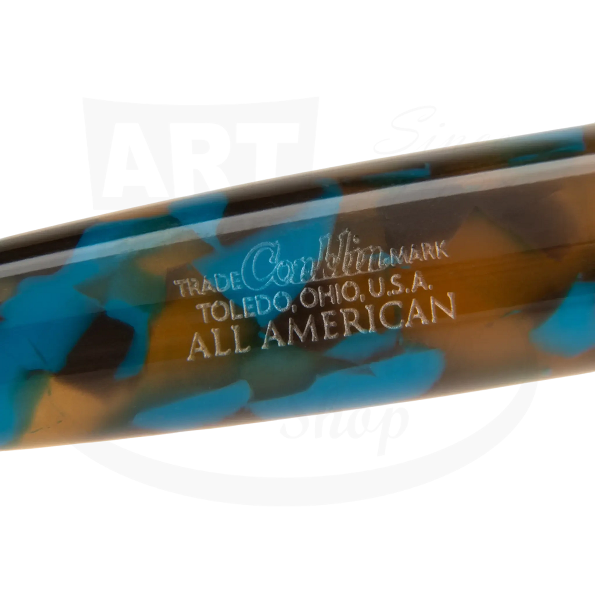The Conklin All American Southwest Turquoise Ballpoint Pen captures the warm, earthy tones of the desert blended with striking turquoise blue. Each piece is crafted from European resin, with unique marbling that ensures no two pens are alike.