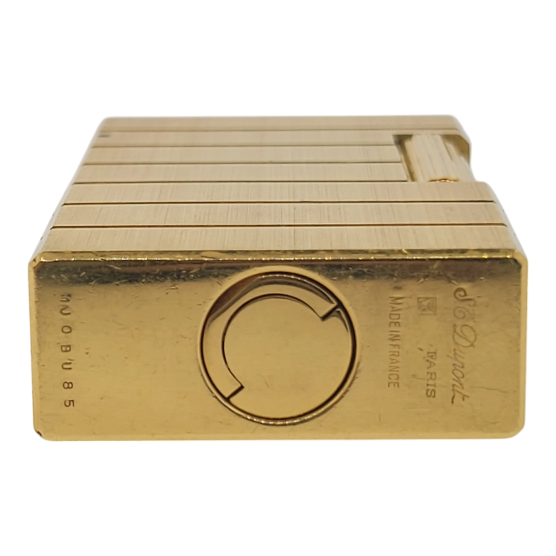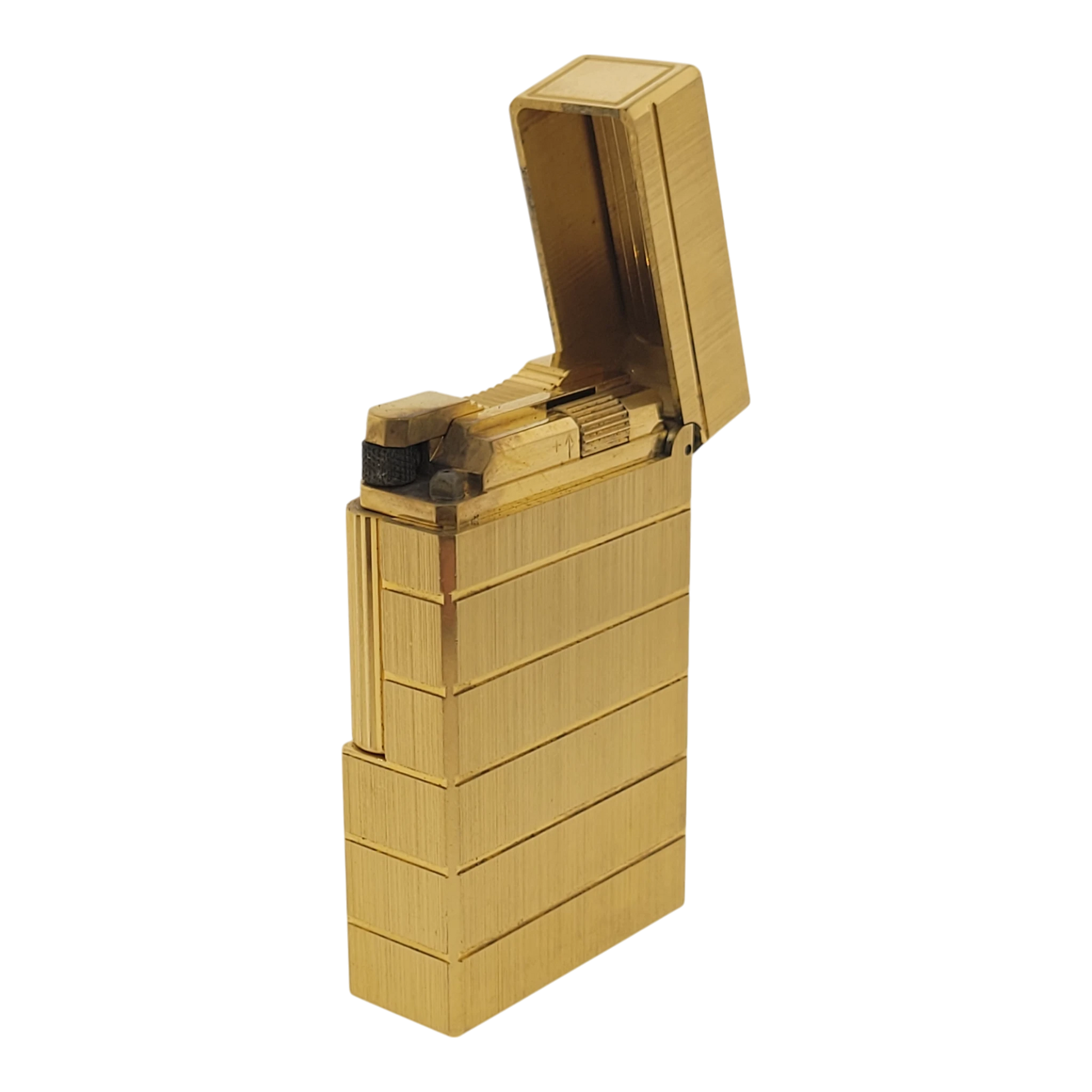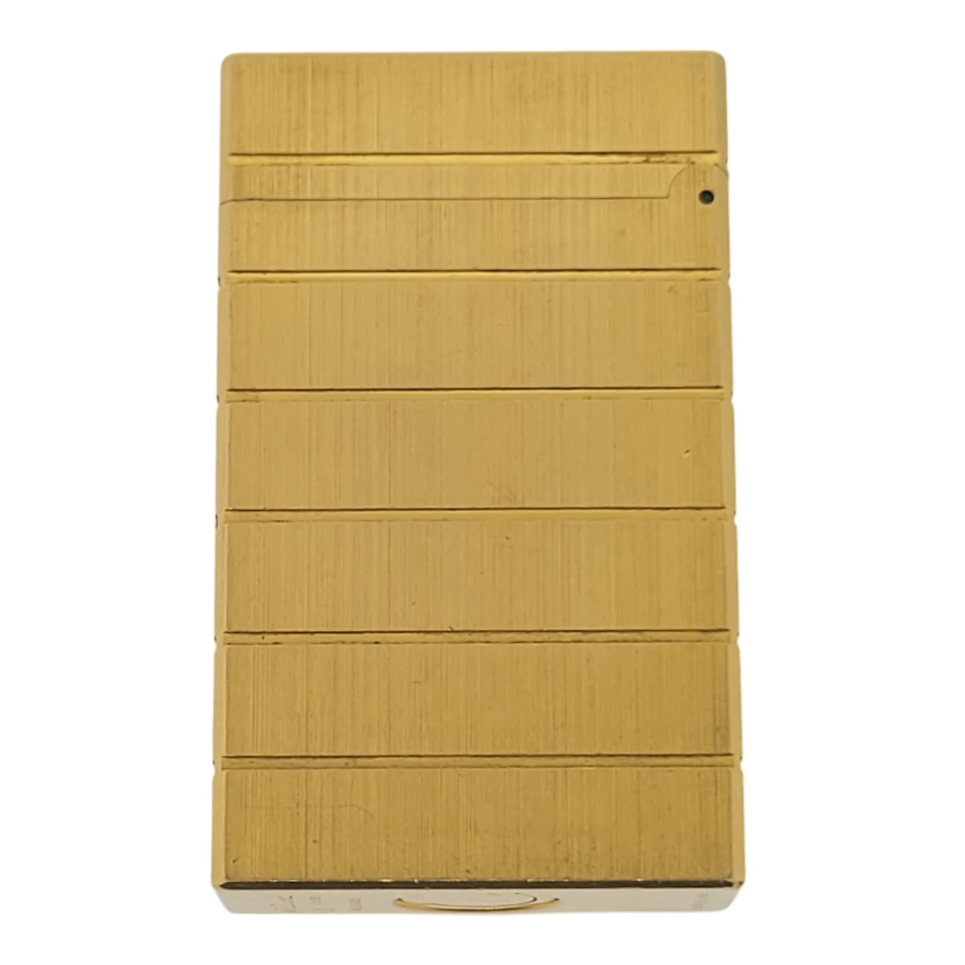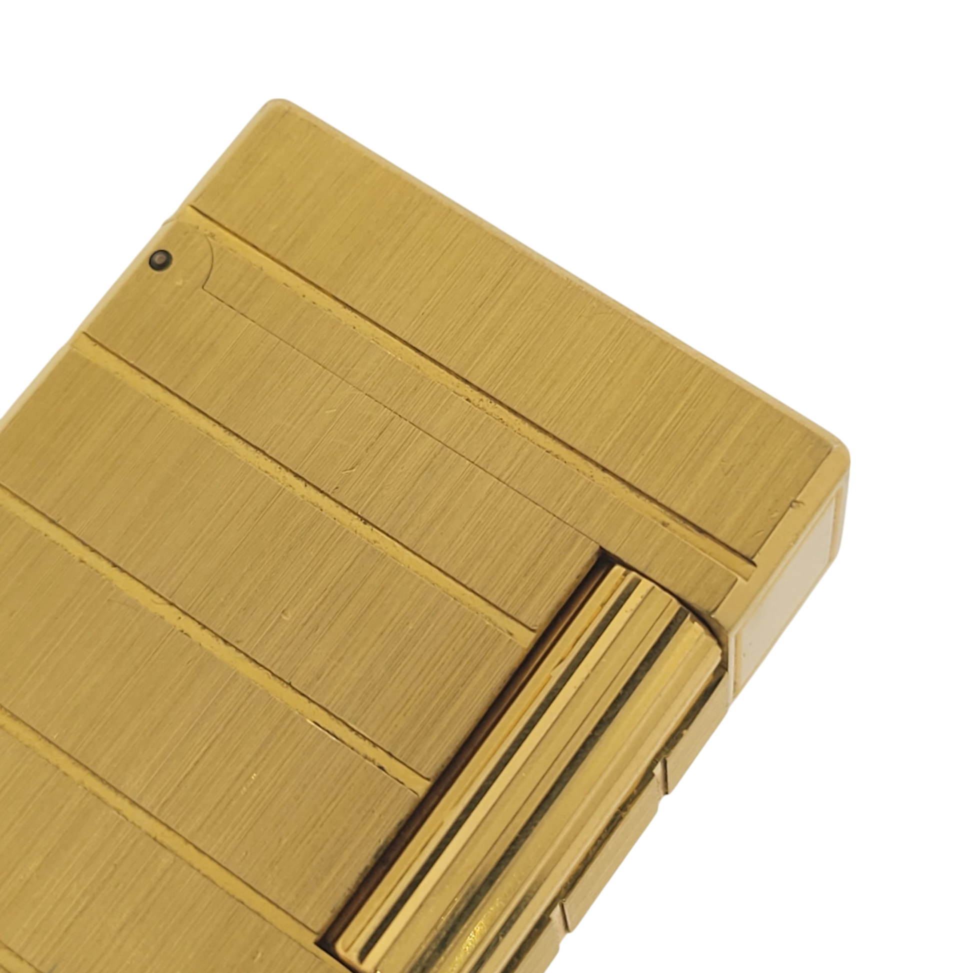 A striking example of early S.T. Dupont craftsmanship, this Ligne 1 lighter features a clean brushed gold finish with refined horizontal line detailing. Its minimalist, elegant design reflects the style of the 1970s and 1980s—an era when Ligne 1 models defined the brand’s reputation for precision and prestige. With a satisfying tactile feel and reliable soft-flame ignition, it remains a favorite among vintage lighter collectors.