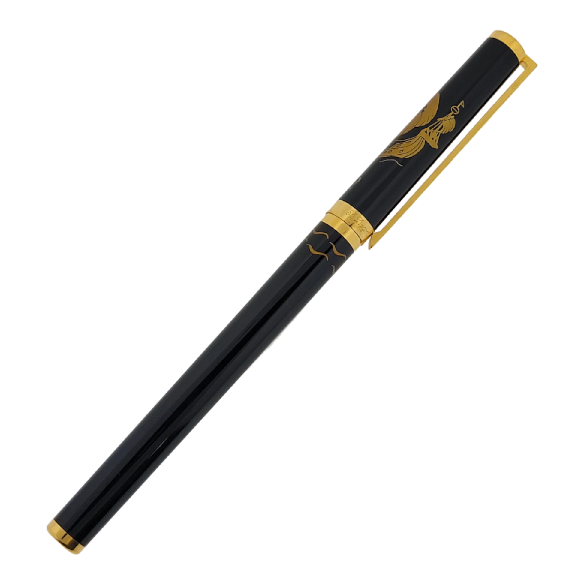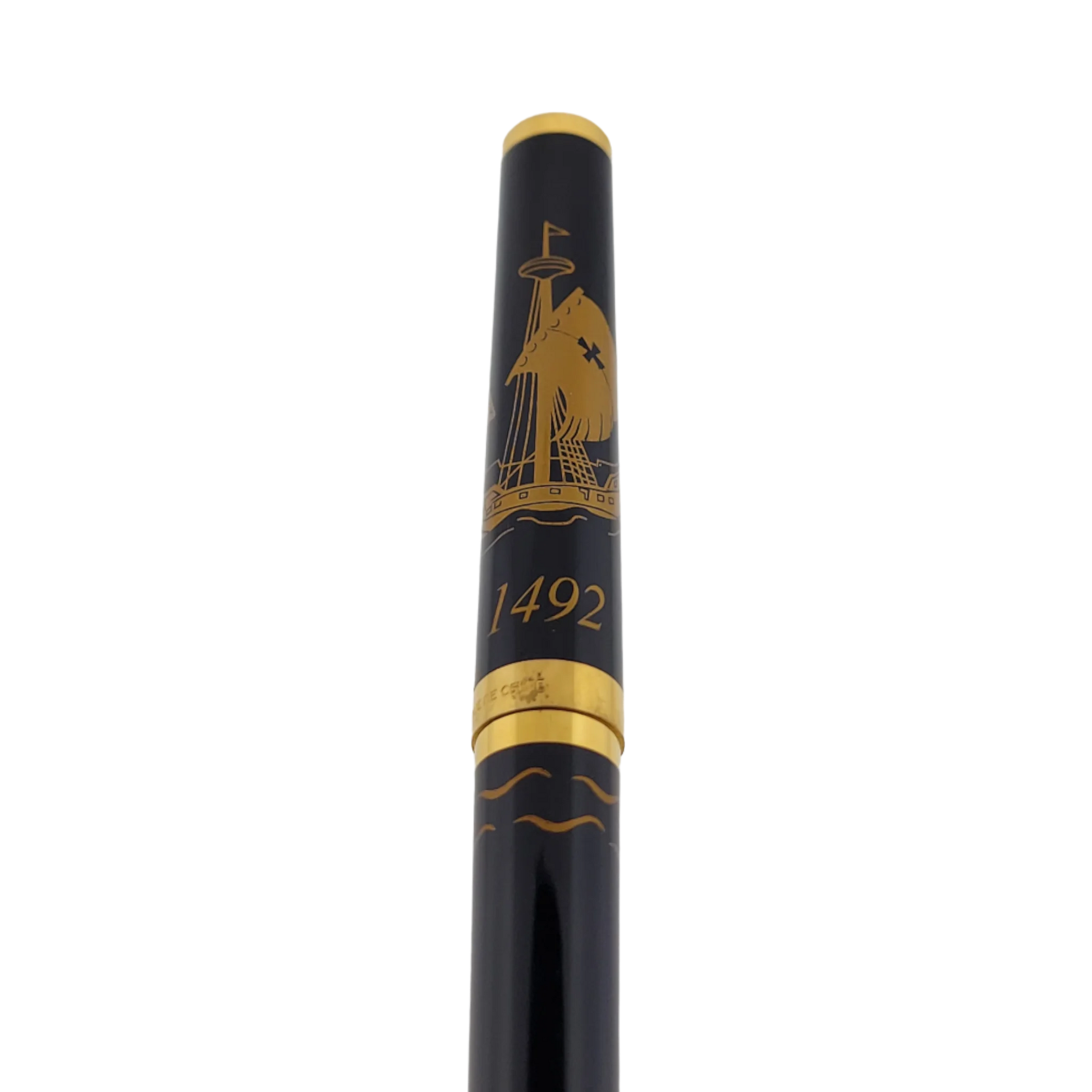 Limited Edition 1492 rollerball pen by S.T. Dupont. Minted for the 500 year anniversary of America. Black lacquer finished with yellow gold trim and a portrait of Columbus' ship. Only 2000 pieces made. # 1775/2000.