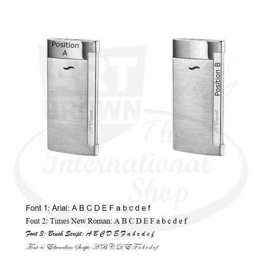 Add a personalized engraving on your new S.T. Dupont lighter. Engraving is typically 3 letters although we can discuss more. Feel free give us a call if you have any questions or a specific engraving idea that is not shown here.