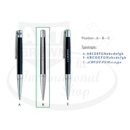 Add a personalized engraving on your new S.T. Dupont pen. Engraving is typically 3 letters although we can discuss more. Feel free give us a call if you have any questions or a specific engraving idea that is not shown here.