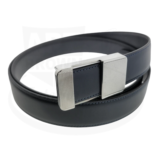 Vintage S.T. Dupont Blue Leather & Palladium Diamond Head Belt, 051061