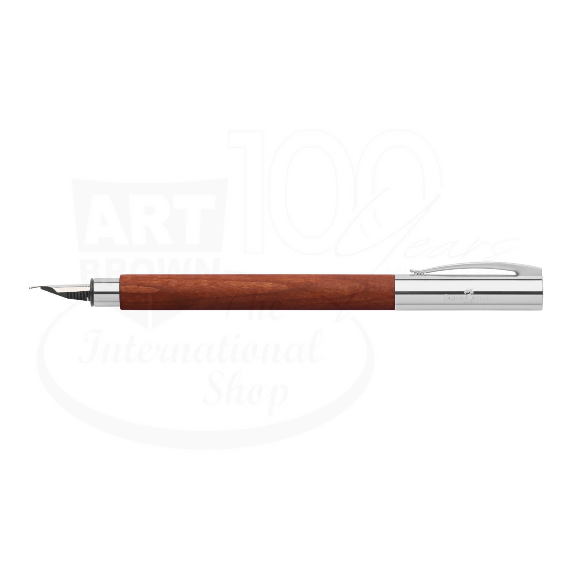 The Faber-Castell Ambition Pearwood Fountain Pen offers understated luxury through natural materials and expert craftsmanship. Its pearwood barrel displays a warm reddish tone enhanced by polished chrome accents.
