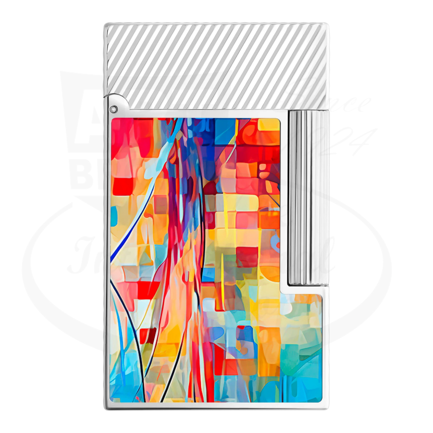 The S.T. Dupont Line 2 Graff'ty collection is a celebration of street art, transforming lighters and pens into true masterpieces. This Line 2 Cling cigar lighter showcases vibrant mosaics of red, yellow, and blue in a stunning multicolor lacquer and palladium finish. It features a double yellow flame and the iconic "Ping" sound upon opening. Perfect for those who appreciate art and functionality in their accessories.