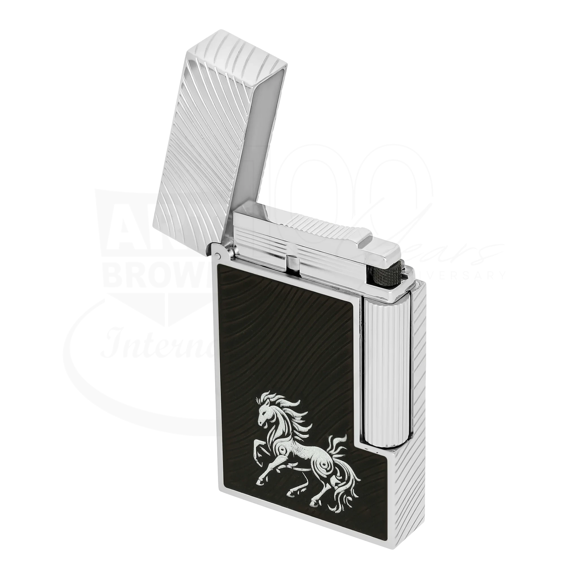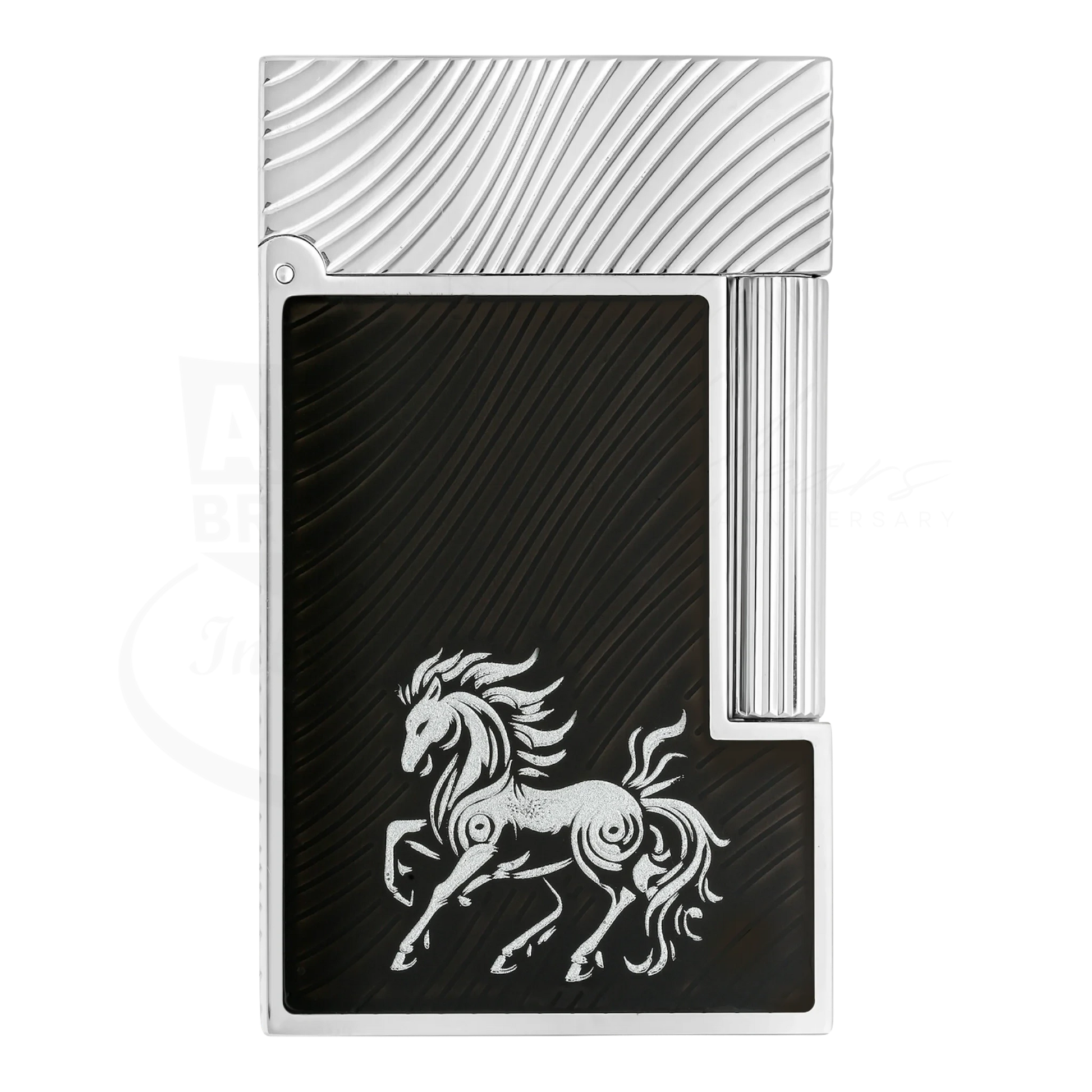 This Line 2 lighter expands on the Horse Mane guilloché by adding a finely detailed horse motif, symbolizing strength, freedom, and momentum. The engraved figure brings added depth to the design while maintaining balance and refinement.