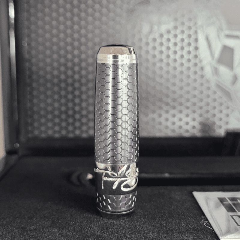 The Tony Stark Grey Fountain Pen is designed on the basis of the Line D model, adorned for this edition with a subtle guilloché honeycomb motif under a glossy lacquer. The body of the pen is engraved with the S.T.DUPONT logo, whilst its cap bears the Tony Stark signature. Its brass clip is coated with glossy palladium.