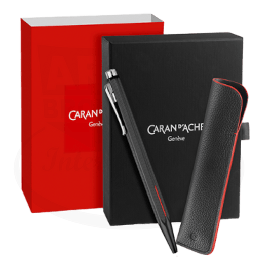 Caran D'Ache Ecridor Racing Set - Black & Red Ballpoint Pen with Leather Case