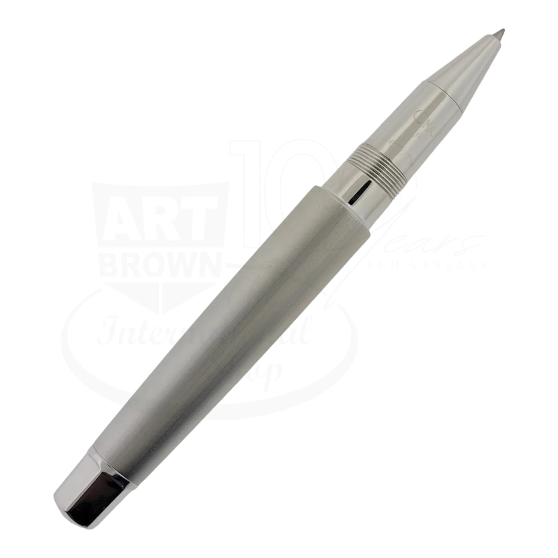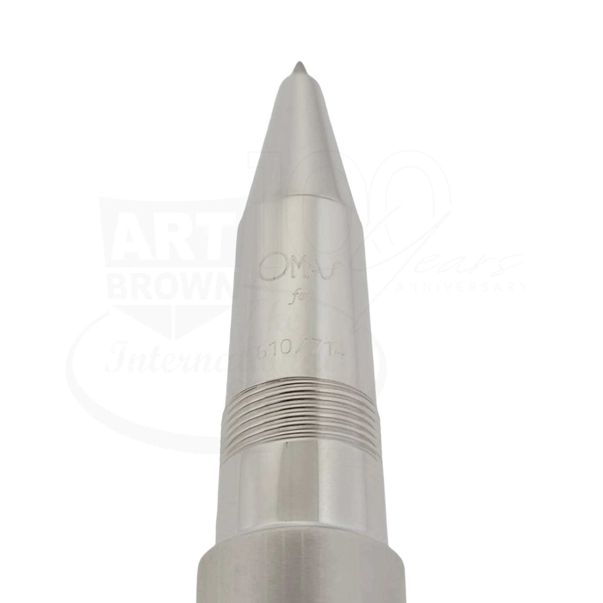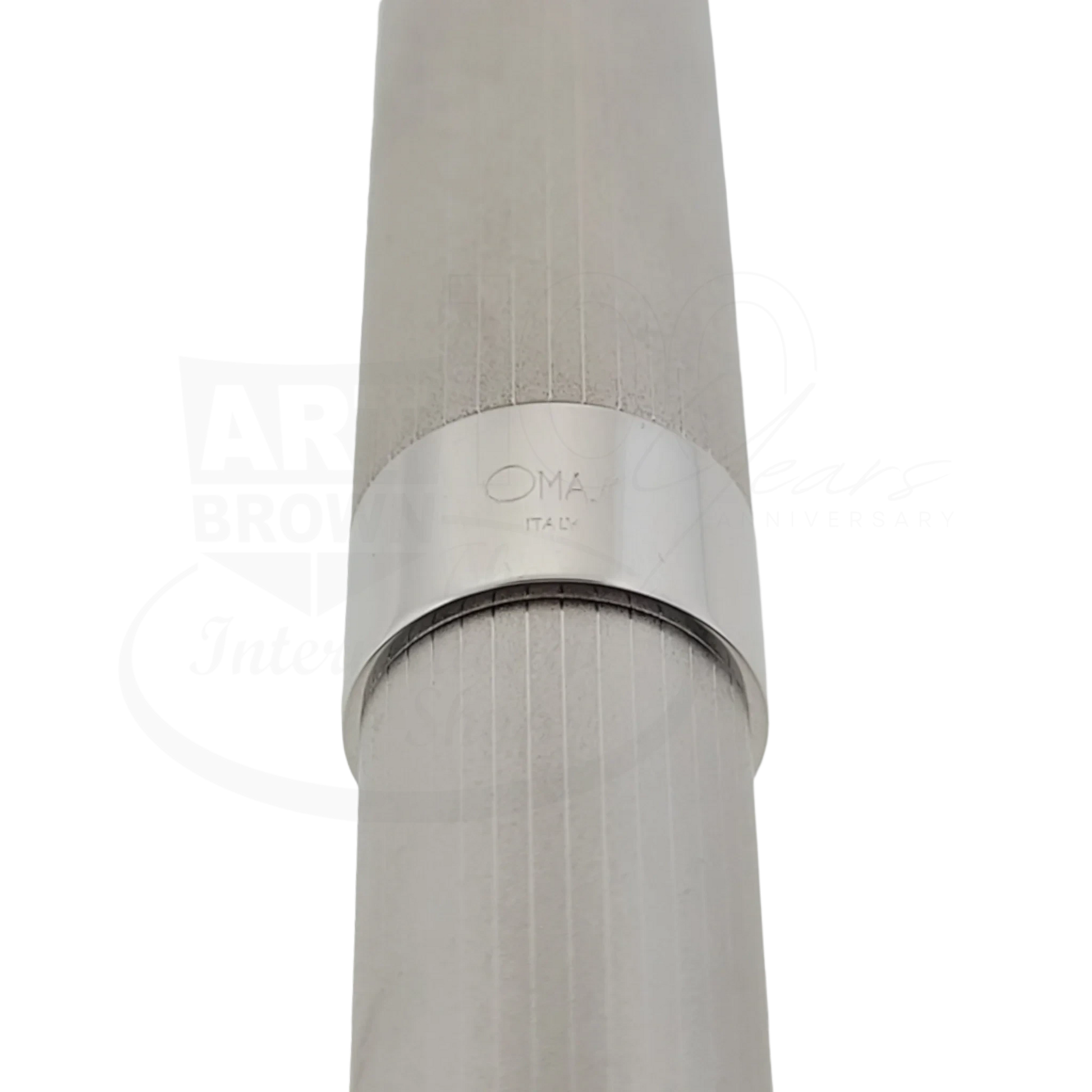 The "Omas for Maserati" Limited Edition rollerball pen is a cleverly designed luxury pen born from an amazing collaboration between Maserati and Omas, Italian companies which both started in Bologna in 1914 and 1925 respectively. It has a powerful and sporty look influenced by Maserati's style along with Omas' exclusive techniques and craftsmanship. It is made of 92.5% Sterling Silver. The iconic "front grill" emblem of Maserati shows on top of the cap and sports a modern, aerodynamic design familiar to Maserati's cars, the GranTurismo. The tapered, shiny clip juxtaposed to the satin finish of the cap separate the skillfully engraved side vents. This pen will drive you to take that fast and bold approach while staying classy and elegant.