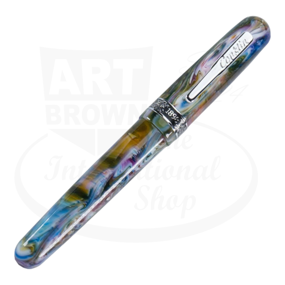 Discover the Conklin 1898 Misto™ Rollerball Collection, showcasing the art of resin mixing. Each pen features a unique blend of colors, achieved through advanced techniques and meticulous attention to detail. Available in Green, Purple, and Orange, these pens are accented with chrome or rose gold trims, making each piece one-of-a-kind. Inspired by Conklin's rich heritage, the pens offer a comfortable grip with a larger surface area, perfect for writing. The rollerball pen uses standard international rollerball refills. Each pen comes in a luxurious gift box, making it an ideal gift for any occasion.