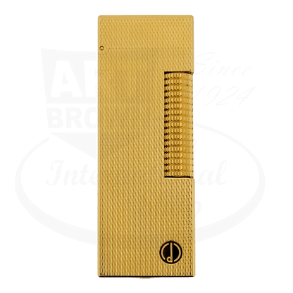 This is a brand new Dunhill lighter with the barley grain pattern in gold with a pipe flame. New old stock - this lighter is in perfect condition aside from light discoloration due to age. Sold with the original box and paperwork.