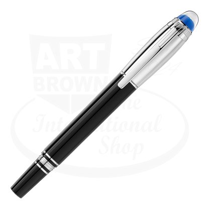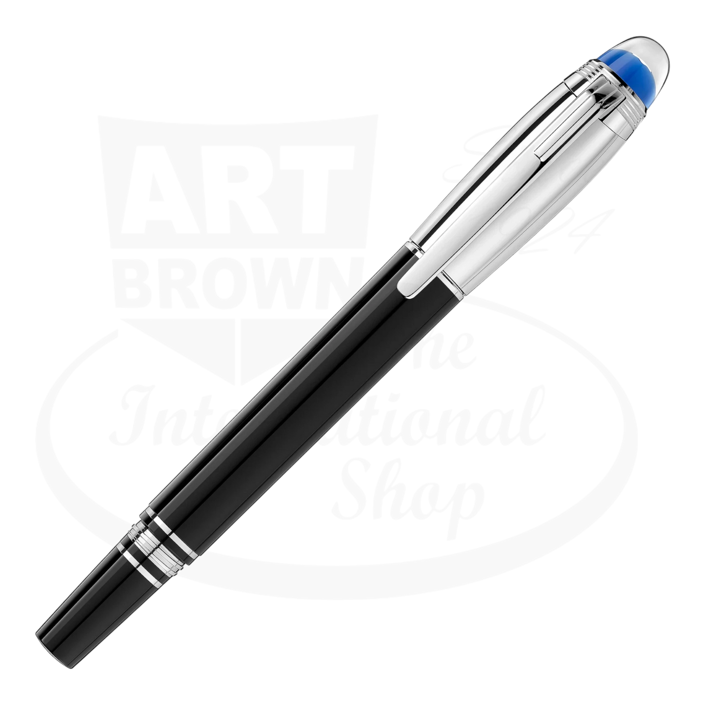 The Montblanc StarWalker fineliner rollerball pen captures the awe and inspiration of space exploration. Featuring the unique StarWalker emblem technology, a translucent blue dome beneath the Montblanc emblem evokes Earth rising above the lunar horizon. The pen combines a black precious resin barrel with platinum-coated cap and fittings, offering a contemporary yet timeless design. An ideal writing companion for those who appreciate craftsmanship, luxury, and the endless possibilities of exploration.