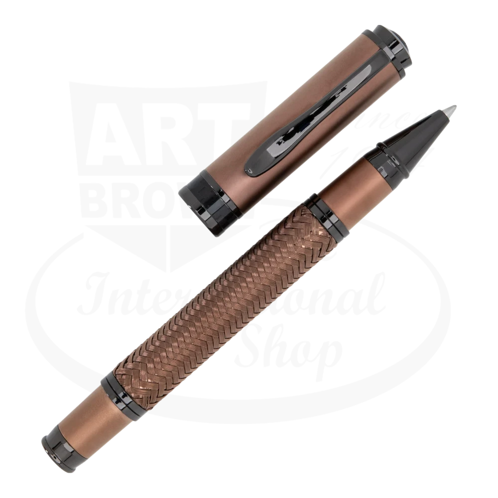 The Monteverde Innova Formula M Rollerball Pen in Bronze delivers a bold presence inspired by motorsport design. Its braided stainless steel barrel with matte bronze PVD coating is both visually striking and practically indestructible, withstanding abrasion and corrosion. Gunmetal appointments and a carbon fiber ring add sharp contrast to its streamlined silhouette. Compatible with Monteverde G2 and W2 rollerball refills, this capped rollerball writes effortlessly and feels solid in hand. The pen arrives in a luxury gift box, making it ideal for daily use or gifting.