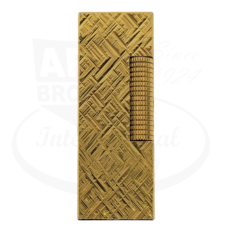This is a preowned gold plated Dunhill lighter with the crosshatch pattern. The lighter is in excellent condition with minor discoloration from use. Sold without the original box or paperwork.