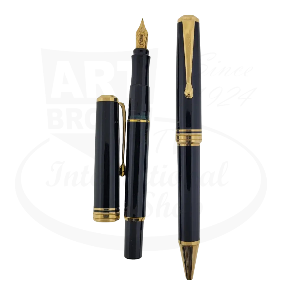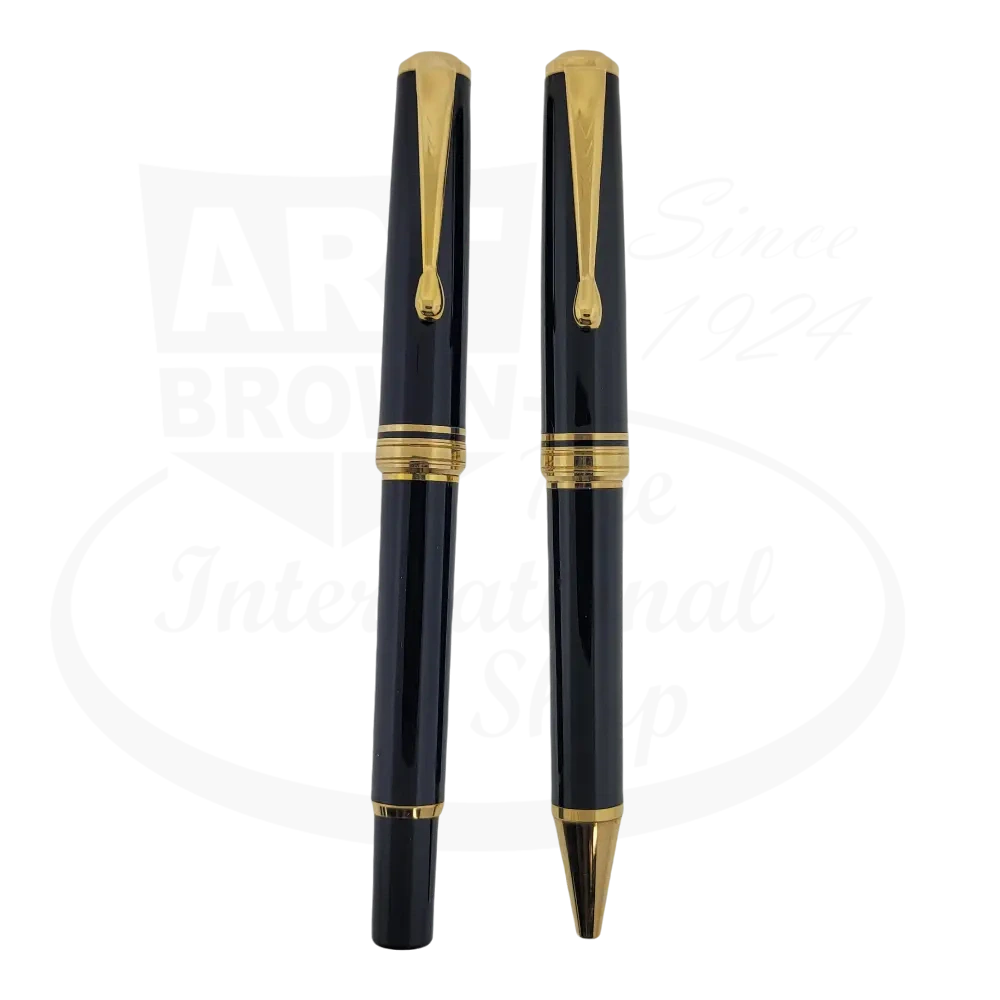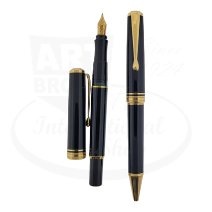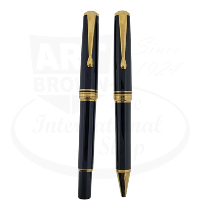 Preowned Refurbished Rollerball & Fountain Pen Set, Black and Gold