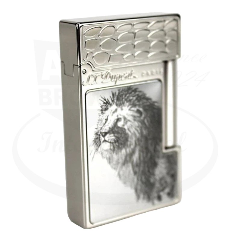 This S.T. Dupont 'Big Five' (Lion) Ligne 2 Lighter is technical and functional, yet also a genuine symbol of elegance with its refined lines, noble materials, and its balanced and reassuring weight. Made entirely from a single block of metal from the body to the reservoir, this lighter is very resistant. The lighter has a palladium finish on a brass case that was hand-engraved on stainless steel. S.T. Dupont, the French Maison founded in 1872 and now specializes in manufacturing cigarette lighters and pens of prestige, presents a new collection of lighters, in limited edition, inspired by the natural beauty of Africa. The five Kings of the Savannah, the symbols of the continent - Lion, Elephant, Rhino, Leopard, and Buffalo - have been artistically interpreted by two French masters, the painter Cecile Riollet and the engraver Frederic Krill. The five models were made with a hand-engraving technique that requires more than 50 hours of work of skilled craftsmen.