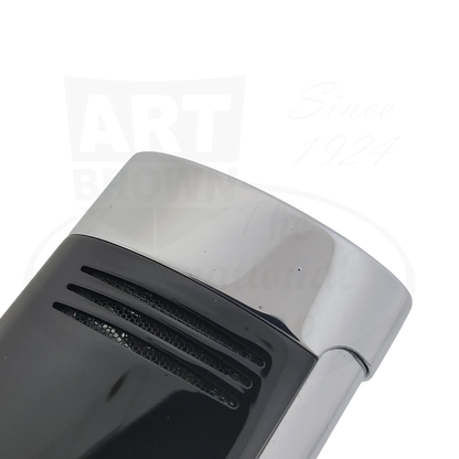 Megajet is S.T. Dupont’s new classic lighter. Cigar smokers seeking performance, efficiency and speed will admire its minimalist design, large size and generous flat flame. Megajet black is the perfect combination of ergonomics and technology. Powerful blue flame. Large flat 20 mm flame. 3 air inlets with active charcoal. Ergonomic size.