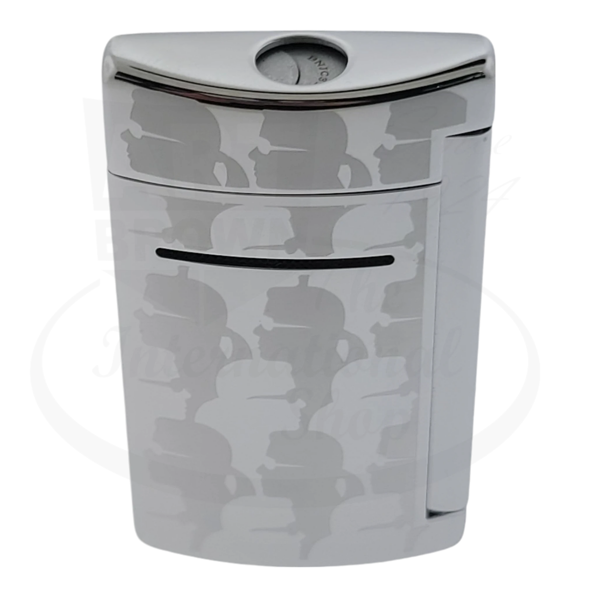 S.T. Dupont collaborates with luxury fashion designer Karl Lagerfeld for this limited Minijet lighter. Finished with chrome, this small powerhouse of a lighter is a perfect addition to any Karl Lagerfeld ensemble.
