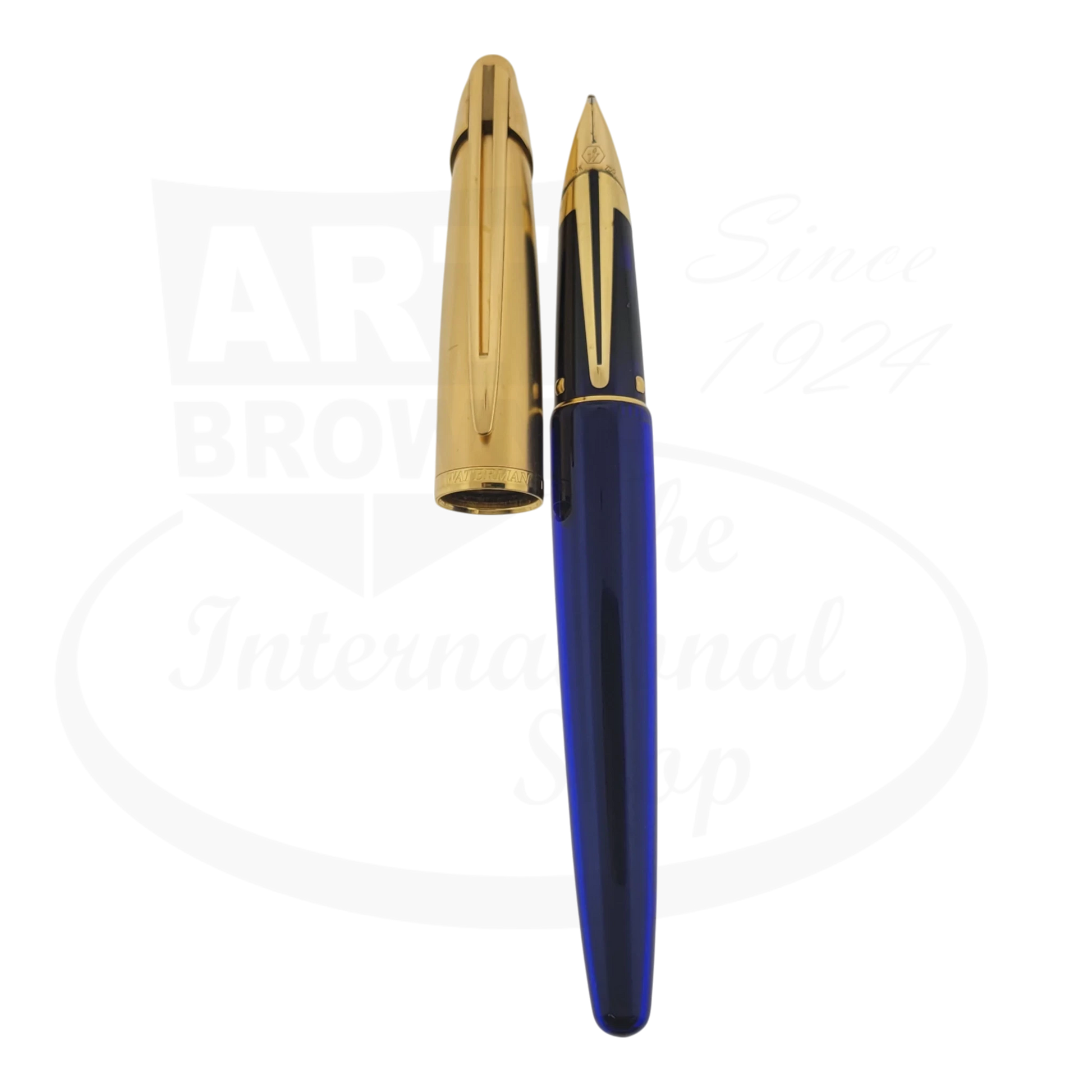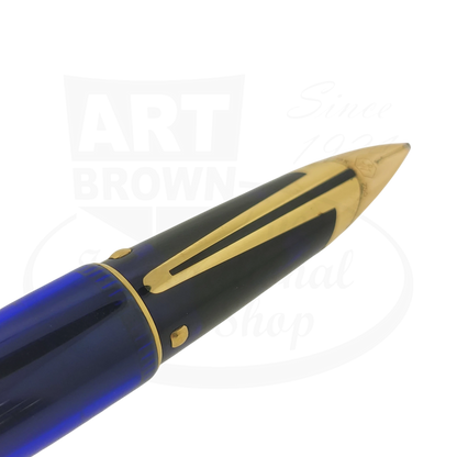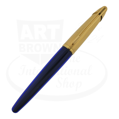 - Finish: Sapphire blue resin with gold-plated cap and trim