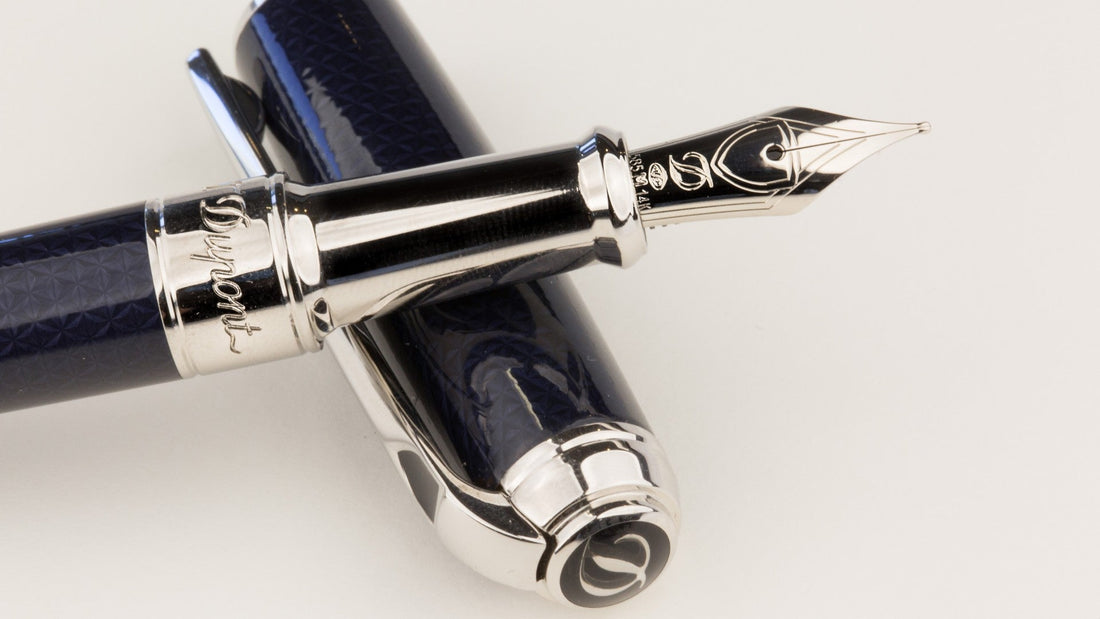 S.T. Dupont fountain pen with shining blue lacquer after being polished.