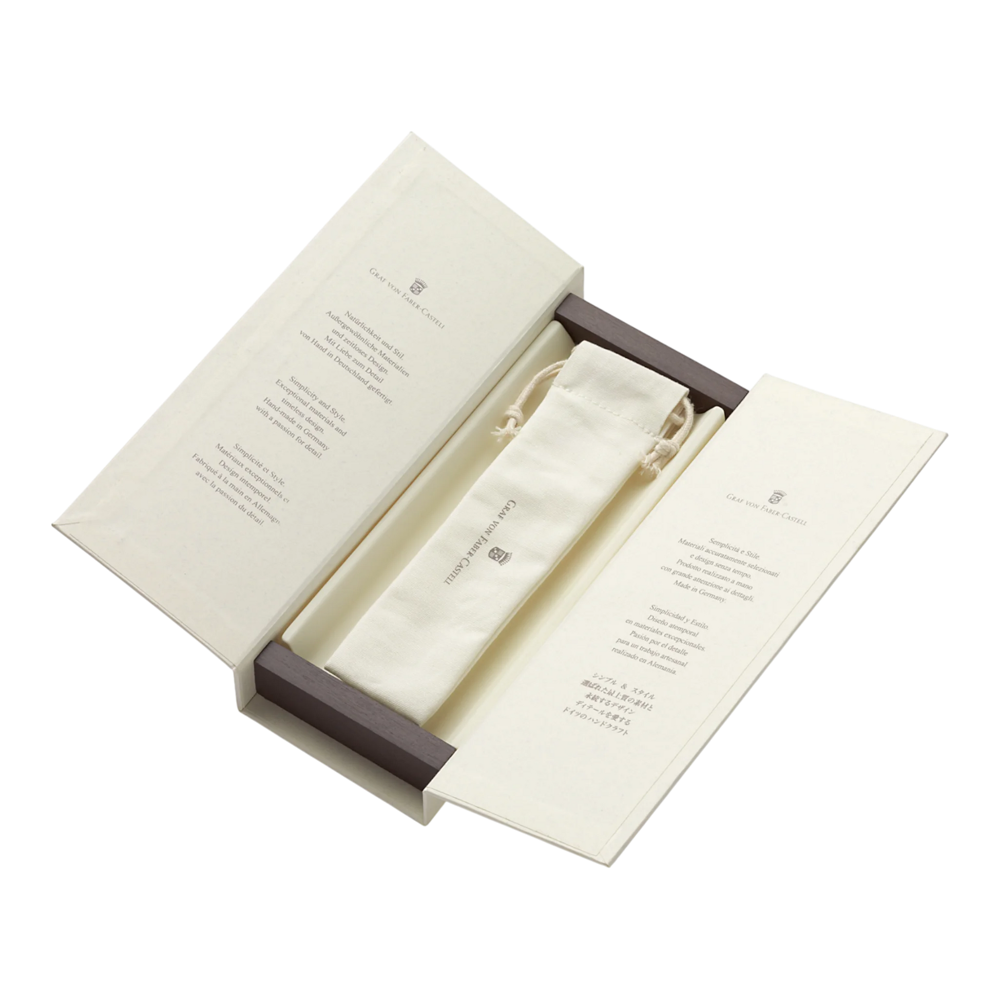 A handmade 18-carat gold nib, fully rhodium-plated and individually run in by hand, delivers a smooth, precise writing experience. The pen uses a cartridge-converter system and is presented in an elegant gift box.