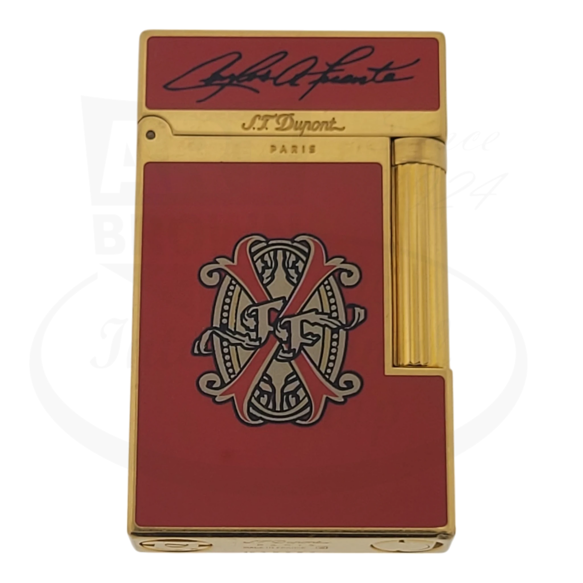 The S.T. Dupont x Arturo Fuente Red Ligne 2 lighter is a striking collaboration celebrating one of the world’s most iconic cigar families. Finished in deep red Chinese lacquer with gold-plated accents, this lighter showcases the Fuente family crest and the signature of Carlos Fuente Jr. Elegantly designed and expertly constructed, it’s a refined accessory for collectors and cigar enthusiasts alike—blending French craftsmanship with Fuente’s storied legacy.